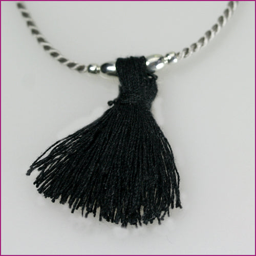 Der A 636 ist ein variables Armband aus Natur‑Perlseide in Grau, das sich durch den verstellbaren Verschluss angenehm und flexibel an jedes Handgelenk anpasst. Die weiche Perlseide wird mit feinen 925/ooo‑Silberelementen kombiniert und erhält durch einen schwarzen Baumwoll‑Puschel von etwa 25 mm Länge einen lebendigen, modernen Akzent. Das Armband gehört zur Serie „Mädel‑Bändel“ und wirkt in dieser Ausführung zugleich lässig, verspielt und stilvoll. Die graue Seide bildet einen ruhigen Hintergrund, während der dunkle Puschel einen klaren, grafischen Kontrast setzt – ein leichtes, unkompliziertes Schmuckstück für den Alltag, das dennoch eine individuelle Note trägt.