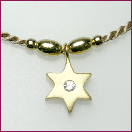 Der A 645 ist ein variables Armband aus Natur‑Perlseide in verschiedenen Farben, kombiniert mit feinen 925/ooo‑Silberelementen. In dieser Variante trägt es einen mattiert‑vergoldeten Stern‑Anhänger von etwa 10 mm Durchmesser, der von einem kleinen weißen Zirkonia akzentuiert wird. Durch den verstellbaren Verschluss lässt sich das Armband flexibel anpassen und sitzt angenehm am Handgelenk. Die weiche Perlseide verleiht ihm eine zarte, feminine Ausstrahlung, während der vergoldete Stern einen warmen, eleganten Blickfang bildet. Dieses Modell gehört zur Serie „Mädel‑Bändel“ und ist auf dem Produktbild in der Farbe Beige zu sehen.